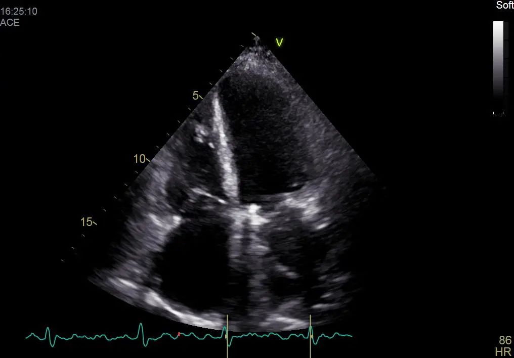 患者自述于其他医院诊断为扩张型心肌病,为进一步确认病情,吉心影像科医生为于女士进行了细致的检查。患者心电图结果显示心律失常,心房颤动,心脏彩超结果显示全心增大,二尖瓣回声增强增厚,瓣叶开放略受限,瓣叶关闭对合不良,三尖瓣开放幅度正常,关闭对合不良,左室及右室运动幅度减低。心脏超声结果显示二尖瓣关闭不全、三尖瓣关闭不全、左室收缩及舒张功能减低,右室收缩及舒张功能减低。