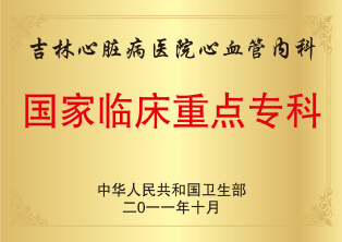 其中,心外科率先开展的二十余项手术达到国际先进水平,心内科完成各类心血管介入检查和手术达5000余例/年。2011年,吉林心脏病医院心内科获批“国家临床重点专科建设项目”。